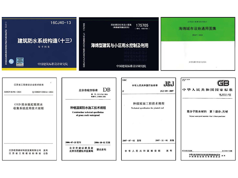 OXD-H虹吸排水板系列、HPM耐根穿刺防水卷材系列。