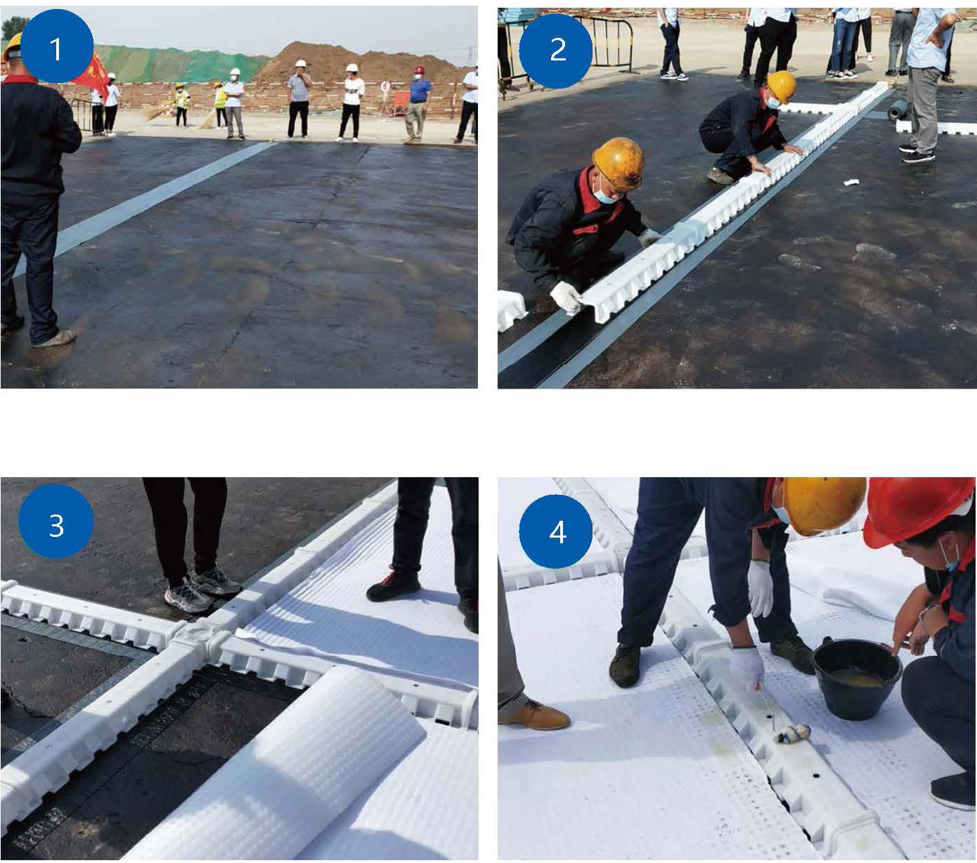 基層驗(yàn)收——規(guī)劃彈線(xiàn)———鋪設(shè)CKF500自粘卷材—―鋪設(shè)虹吸排水槽——鋪設(shè)高分子防護(hù)異型片——安裝虹吸透氣觀察管(安裝沉淀觀察井)——接入雨水收集系統(tǒng)——自檢驗(yàn)收——檢查驗(yàn)收。