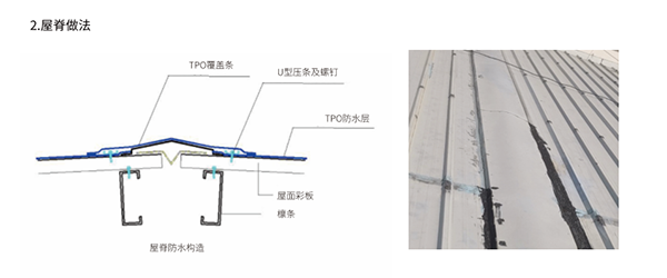 2.6、TPO維修專用 產品執行標準--GB 18173.1-2012 卷材長20米寬2米;搭接邊10公分;厚度0.8+覆布;重量:0.8KG/㎡ 輔料:水泥基面用水泥粘結膠料和鋼屋面用氯丁膠、固定用壓條、鋼釘。