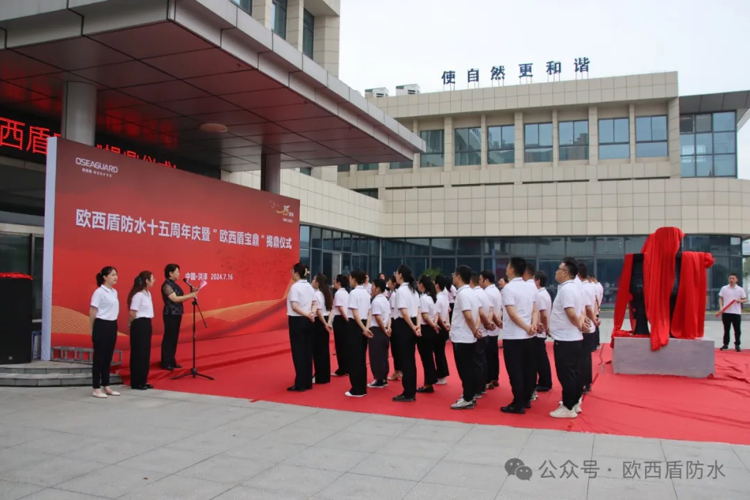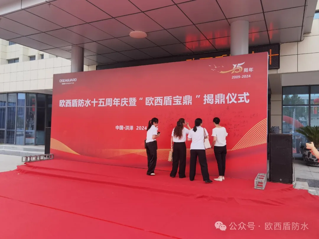 2024年7月16日,江蘇歐西盾科技有限公司迎來了十五周年的重要時刻,公司特此舉辦了歐西盾防水十五周年慶系列活動,并以“歐西盾寶鼎”揭鼎儀式作為開幕。慶典活動在簽字儀式后正式拉開序幕。