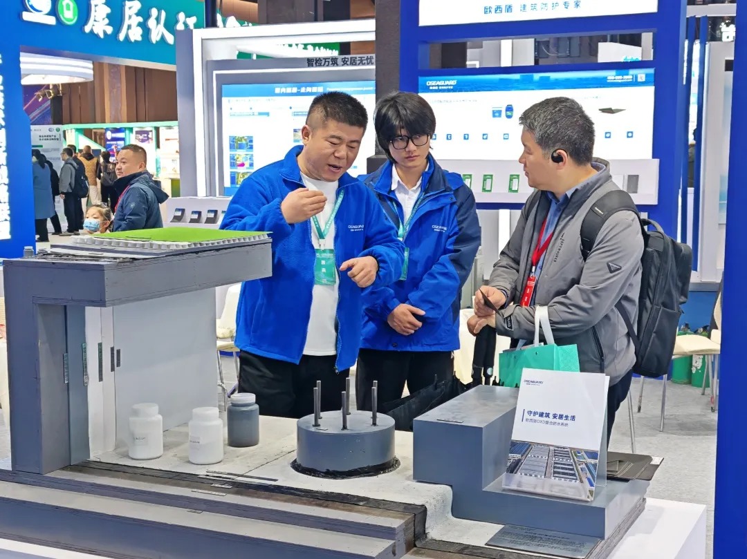 本屆住博會以 “共享創(chuàng)新 共建未來 構建開放合作產業(yè)協作新生態(tài)” 為核心主題,聚焦好房子建設、綠色低碳、智能建造等關鍵領域。歐西盾緊扣行業(yè)趨勢,在展位集中展示了綠色環(huán)保防水系列產品與建筑修繕專項解決方案,通過實物陳列、技術講解、案例分享等多元形式,直觀呈現產品在抗?jié)B耐用、低碳節(jié)能等方面的核心優(yōu)勢。