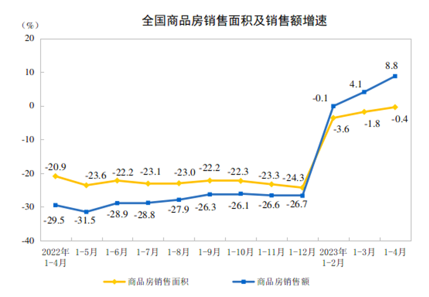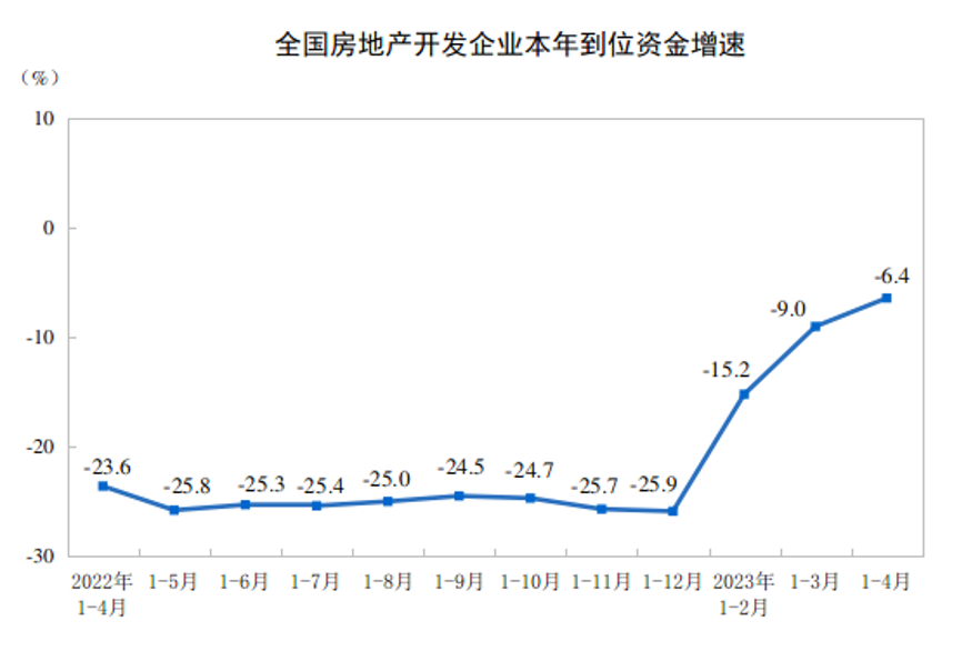 4月末,商品房待售面積64487萬平方米,同比增長(zhǎng)15.7%。其中,住宅待售面積增長(zhǎng)15.4%。